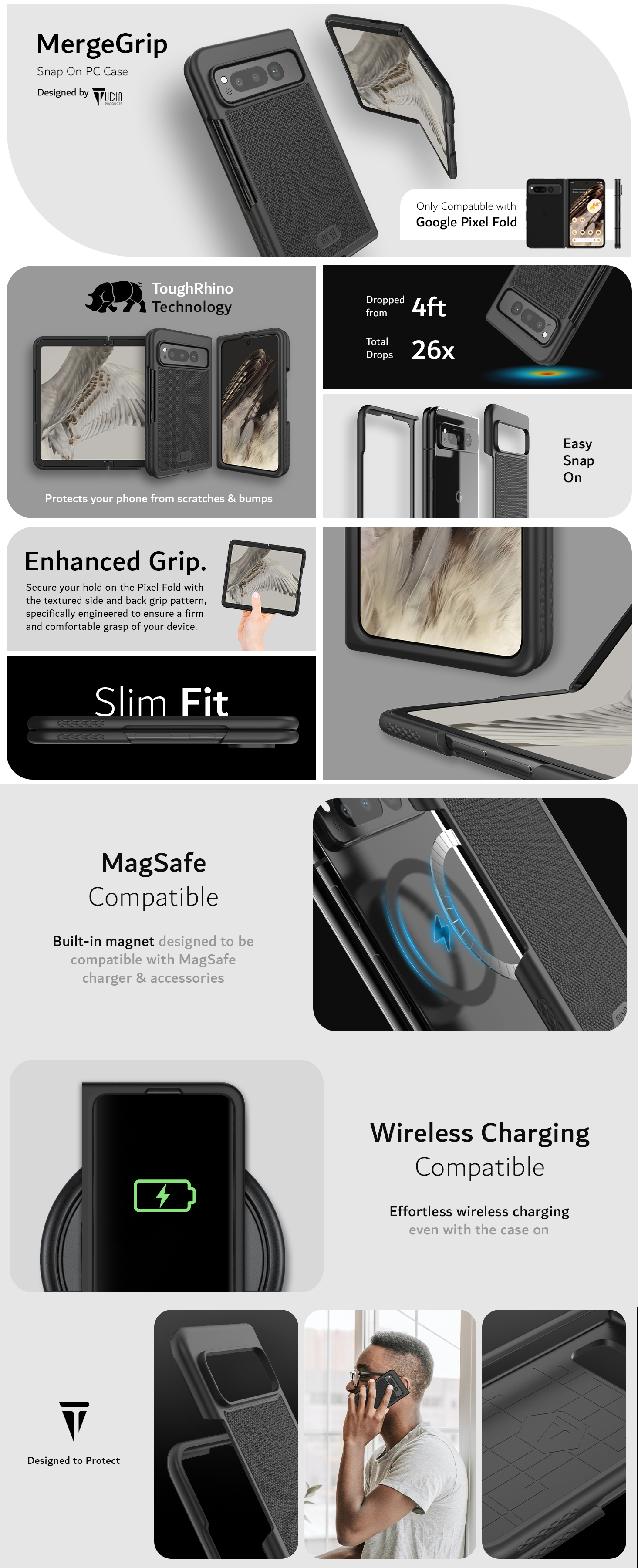 Google Pixel Fold MagSafe Compatible Case MergeGrip with Built-In Magnet