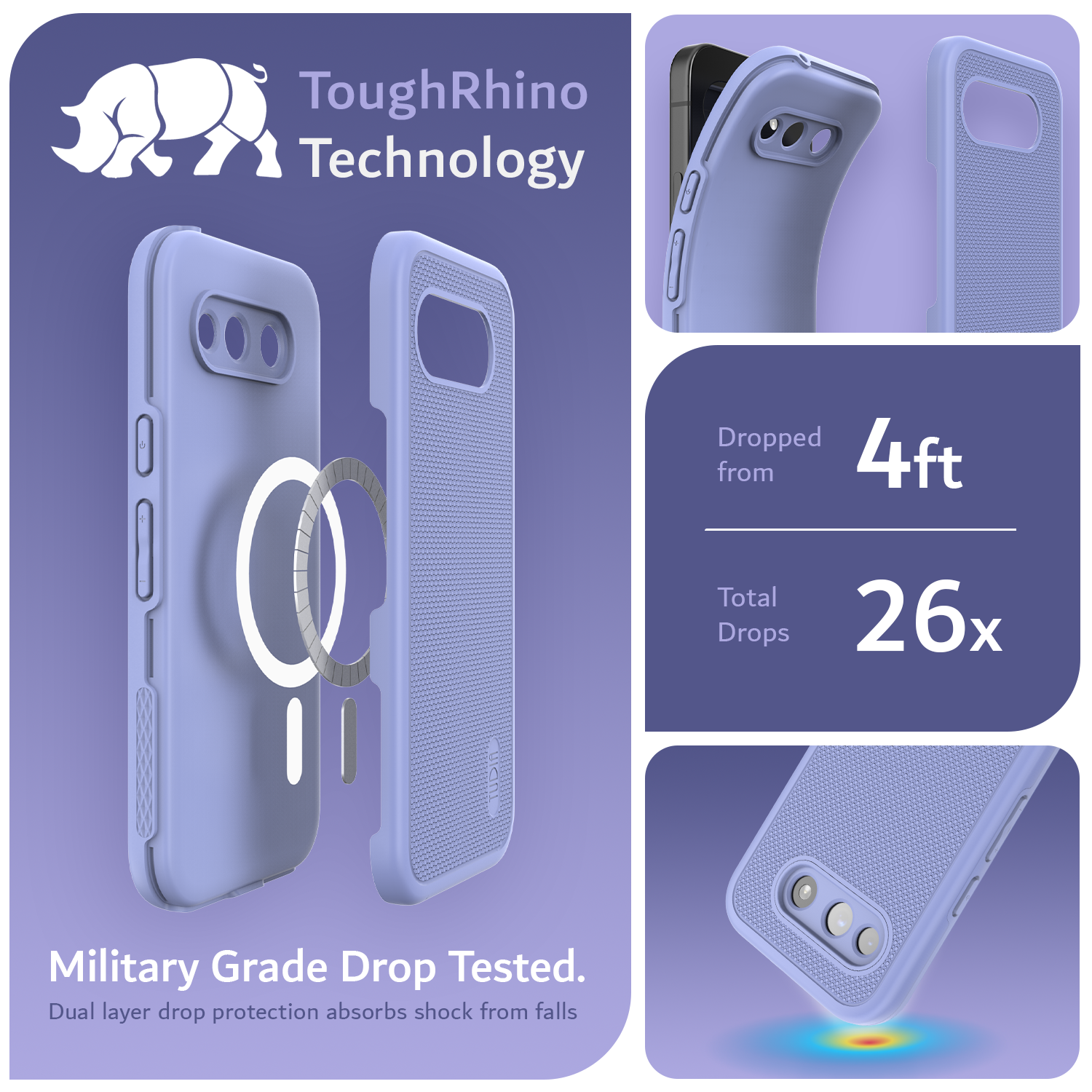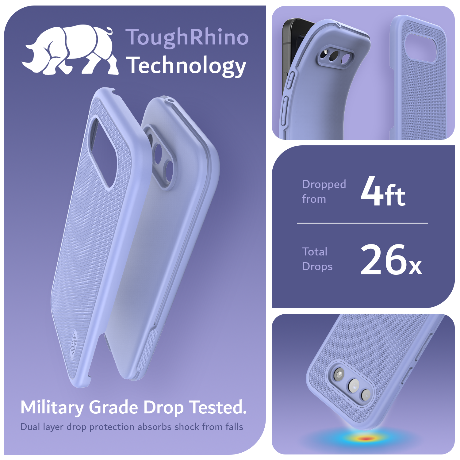 ● ToughRhino Technology: Dual-layer design with shock-absorbing TPU and durable polycarbonate for strong drop protection.