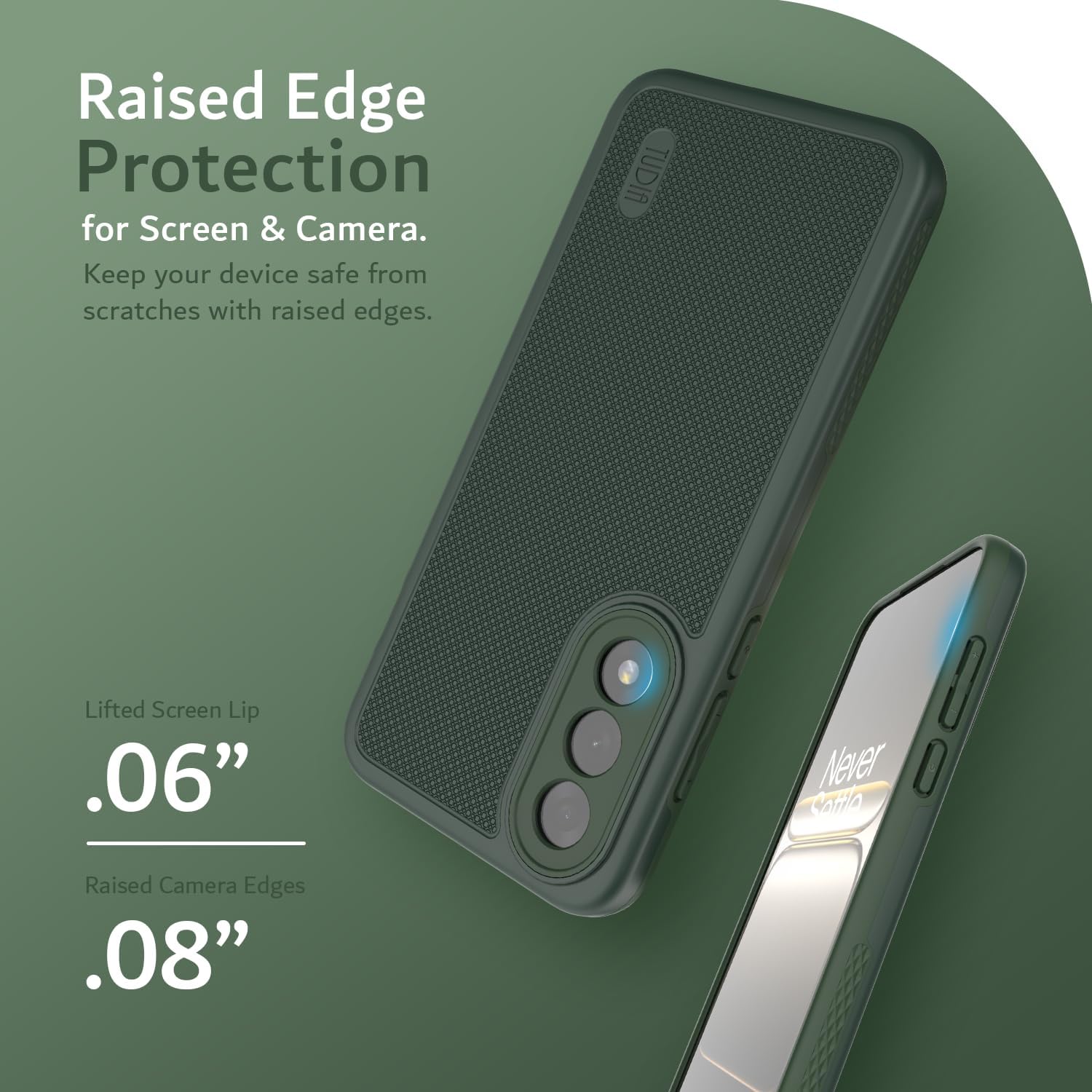 ● Raised Edge Protection: Raised lips safeguard screen and camera from surface contact.