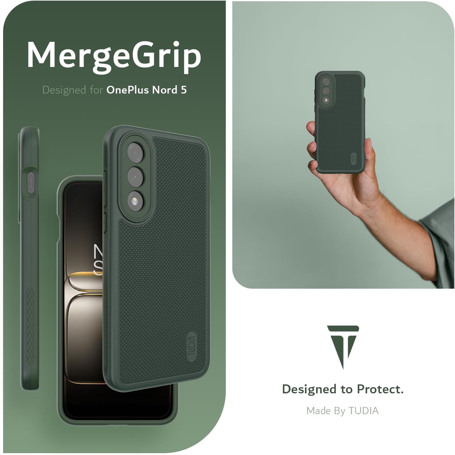 Protect your OnePlus Nord 5 5G with the TUDIA MergeGrip [Military Grade] Case, designed for maximum durability and comfort. Built with a dual-layer structure combining a soft TPU inner layer and a tough polycarbonate outer shell, this case provides military-grade drop protection against everyday impacts, bumps, and scratches.